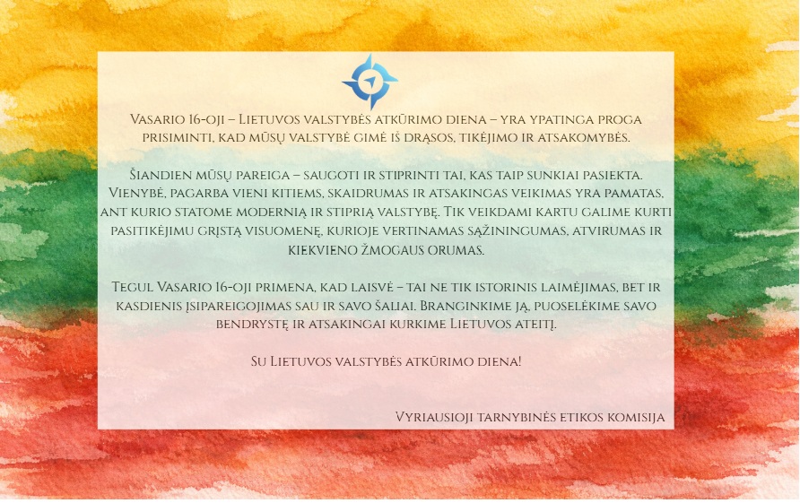 Tegul Vasario 16-oji primena, kad laisvė – tai ne tik istorinis laimėjimas, bet ir kasdienis įsipareigojimas sau ir savo šaliai. Branginkime ją, puoselėkime savo bendrystę ir atsakingai kurkime Lietuvos ateitį.